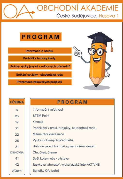 Vítejte na Obchodní akademii v Českých Budějovicích. Jsme moderní střední škola s dlouholetou tradicí. Naší prioritou je osobnostní rozvoj studentů a příprava na jejich úspěšnou profesní budoucnost.