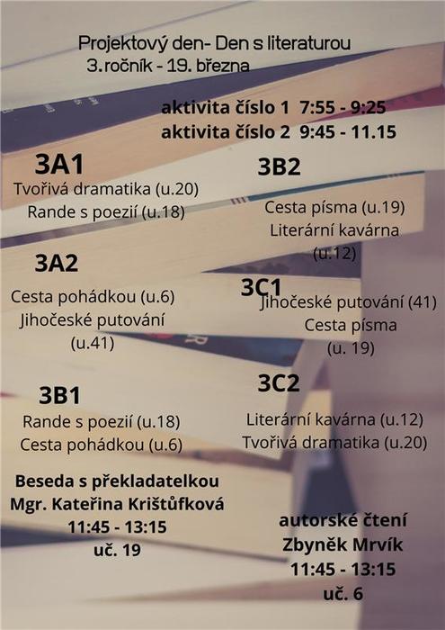 Ve čtvrtek 19. března 2026 připravili učitelé v rámci projektového Dne s literaturou.pro žáky 3. ročníku 6 workshopů