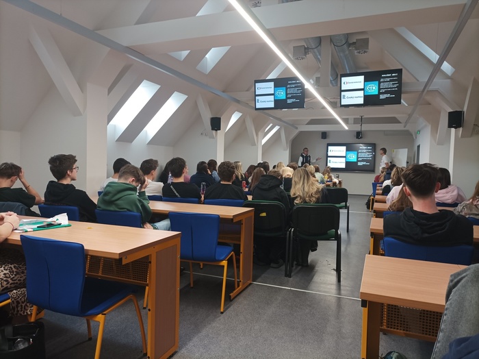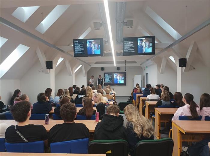Dne 24. listopadu 2025 zavítali na naši školu dva zkušení redaktoři, novináři Pavel Pechoušek a Marek Bílek. V rámci přednášky pro třídy 3.ročníku seznámili studenty shistorií tištěných médií, vlivem současných zpravodajských serverů a problematikou dezinformací. Připomněli, že umělá inteligence je mocný nástroj, ale lidský faktor zůstává nezastupitelný. V praktické části si studenti vyzkoušeli tvorbu vlastní tiskové zprávy. Spojili síly dohromady a nyní se pracuje na oficiální tiskové zprávě. Tak brzy na viděnou v médiích!