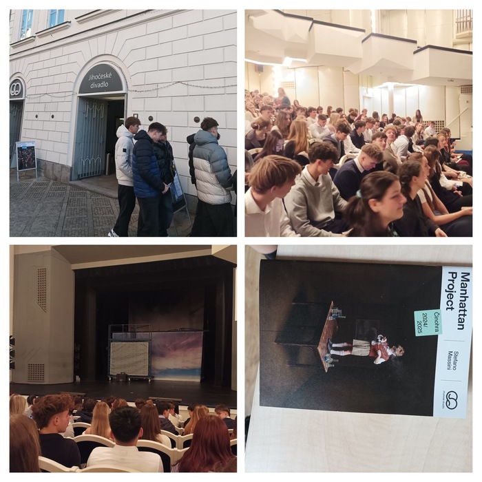 Studenti 2. ročníku zhlédli ve středu 19. listopadu 2025 divadelní představení Jihočeského divadla Manhattan Project.