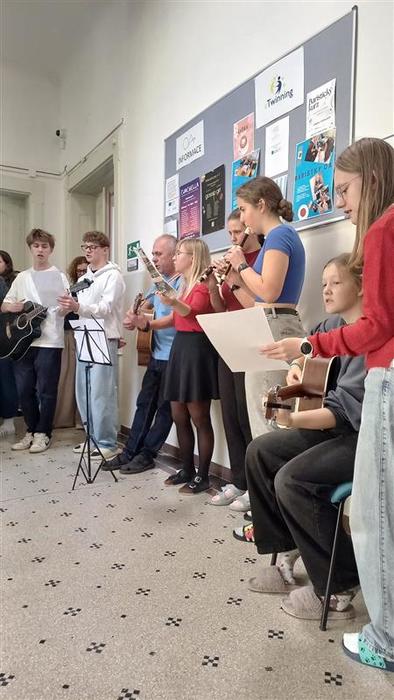 V týdnu kolem výročí 17. listopadu se naše škola aktivně zapojila do vzdělávacího projektu Samet na školách, který organizuje iniciativa Díky, že můžem. V rámci aktivit si studenti v hodinách dějepisu přiblížili atmosféru sametové revoluce a diskutovali o významu svobody, demokracie a občanské angažovanosti. Na školním schodišti si zazpívali písně Karla Kryla a Jaroslava Hutky – písničkářů, jejichž tvorba symbolizuje odpor proti útlaku a touhu po svobodě. Společný zpěv vytvořil silný a emotivní okamžik, kterým jsme si všichni připomněli hodnoty, za něž se tehdejší studenti a občané postavili.