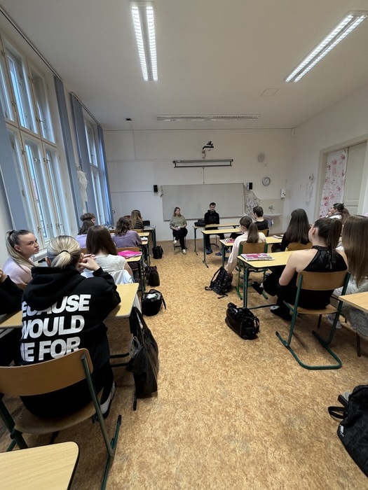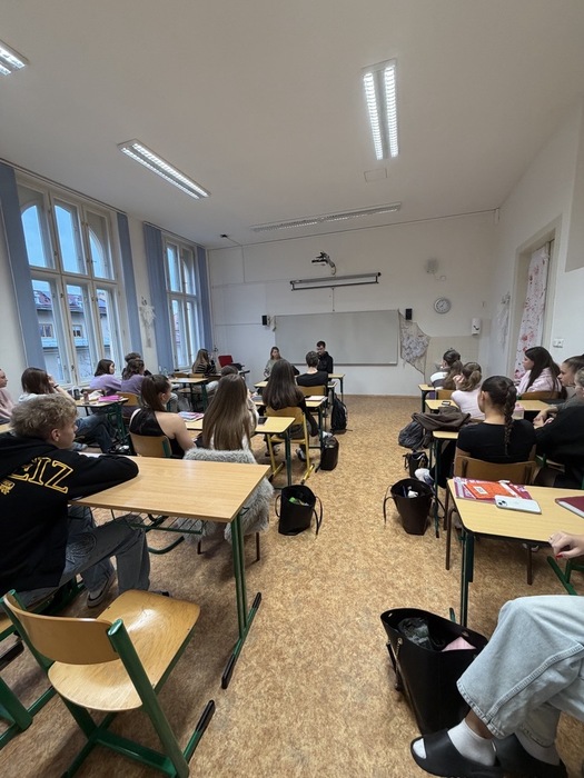 V pátek 21. listopadu 2025 navštívil naši školu Jindřich H., jeden z našich úspěšných absolventů, který v současné době studuje obor Finance a účetnictví na Jihočeské univerzitě v Českých Budějovicích. V průběhu setkání sdílel se studenty 4. ročníku cenné informace o průběhu studia, jeho náročnosti i zázemí univerzity. Největší přínos však představovaly jeho osobní zkušenosti, jež studentům poskytly reálný pohled na život na vysoké škole. Atmosféra byla velmi přátelská a setkání působilo na studenty nejen inspirativně, ale také motivujícím způsobem.